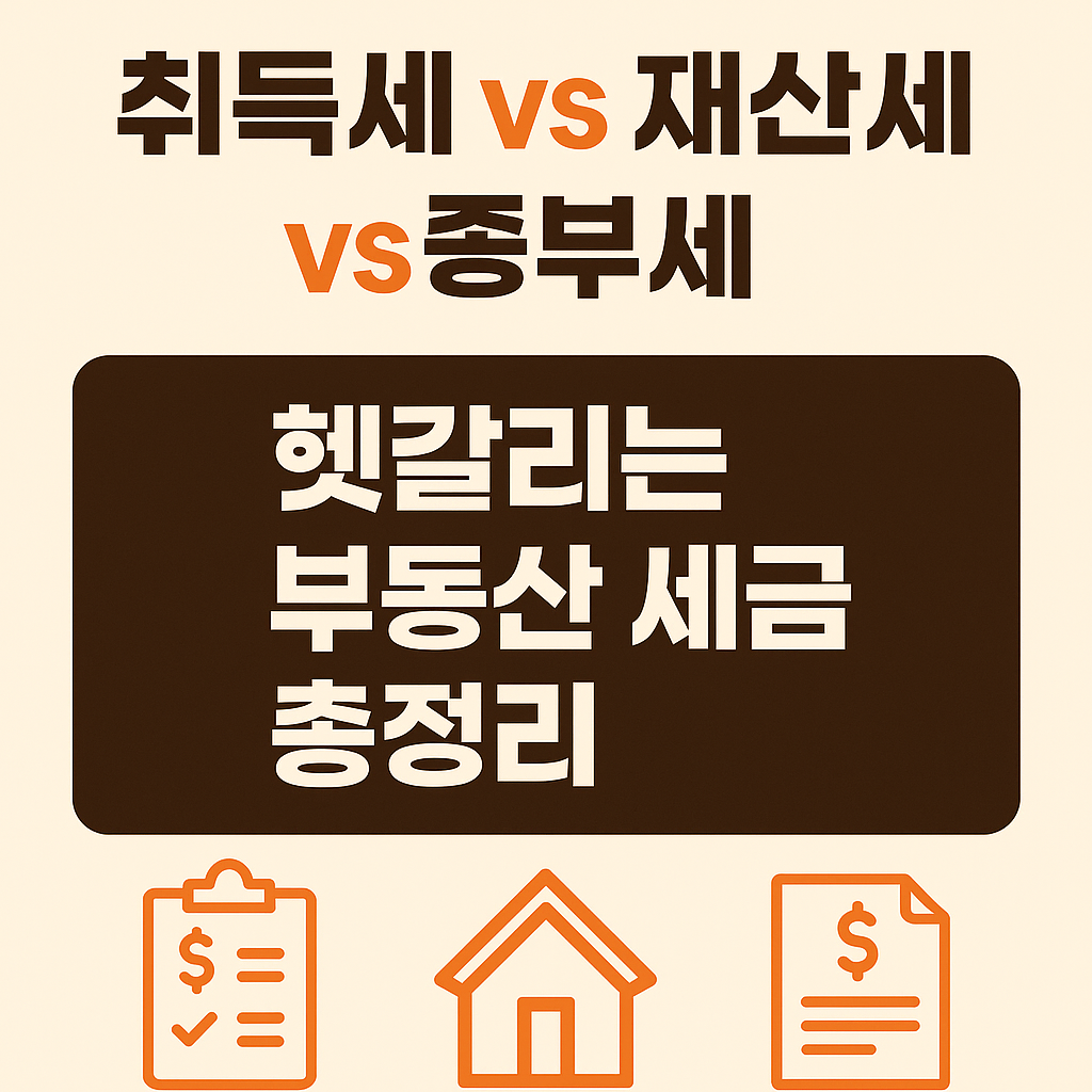 부동산을 소유하거나 거래할 때 반드시 알아야 하는 세금들이 있습니다. 바로 취득세, 재산세, 종합부동산세(종부세)인데요. 이 세 가지 세금은 부과 시점, 대상, 계산 방식 등이 달라 헷갈리기 쉽습니다. 이번 글에서는 이 세금들의 차이점을 알기 쉽게 정리해 드리겠습니다.