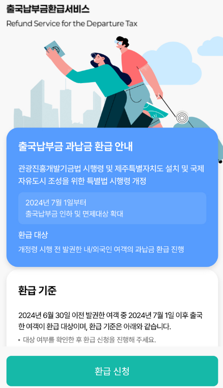 먼저, 2024년 6월 30일 이전 발권 후 2024년 7월 1일 이후 출국자: 인하 전 가격으로 납부했지만 실제 적용은 인하 후라 차액 환급 가능.