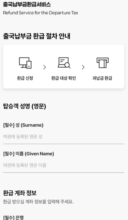 사이트에 접속해 '환급 신청' 메뉴를 클릭하고, 여권 번호나 항공권 번호, 예금주 정보를 입력해 조회하세요. 자동으로 환급 가능 금액이 뜹니다.