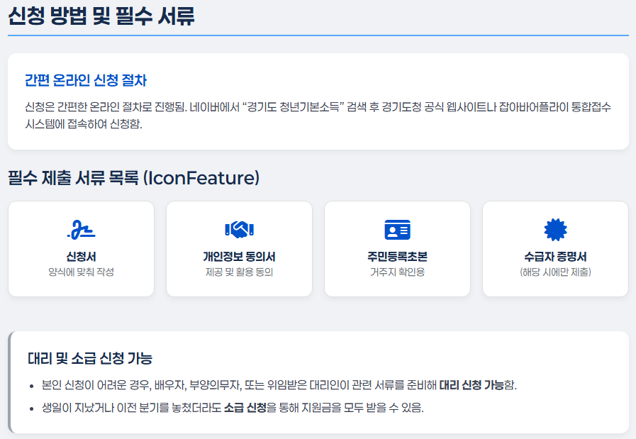청년기본소득 신청은 간편한 온라인 절차로 진행됩니다. 네이버에서 “경기도 청년기본소득”을 검색해 경기도청 공식 웹사이트나 잡아바어플라이 통합접수시스템에 접속하면 됩니다.