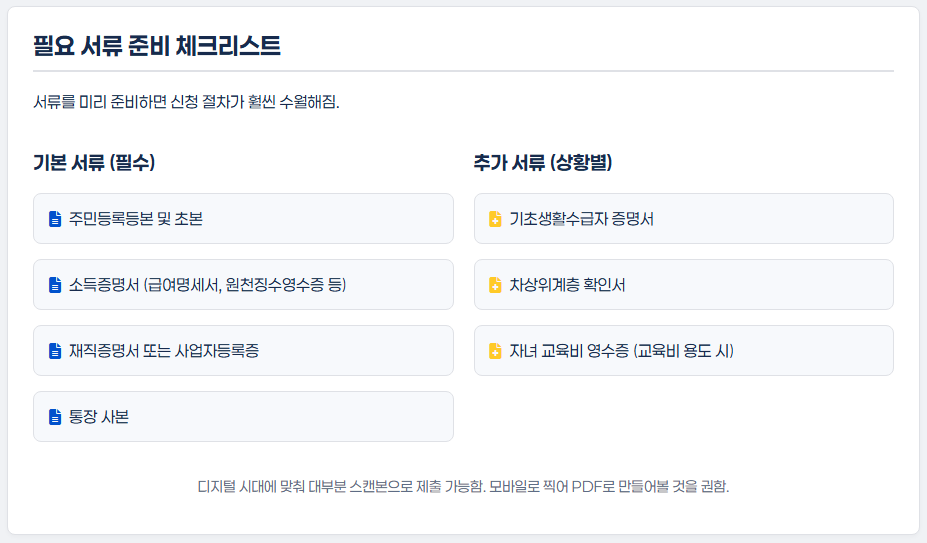 서류가 제일 중요해요! 미리 준비하면 신청이 훨씬 수월합니다.