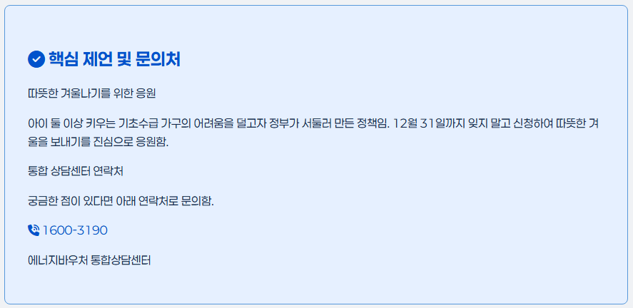 아이 둘 이상 키우면서 기초수급으로 생활하시느라 정말 힘드실 텐데, 겨울 난방비라도 조금이라도 덜어드리려고 정부가 서둘러서 정책을 만든 거라고 하니 꼭 챙기셨으면 좋겠어요.