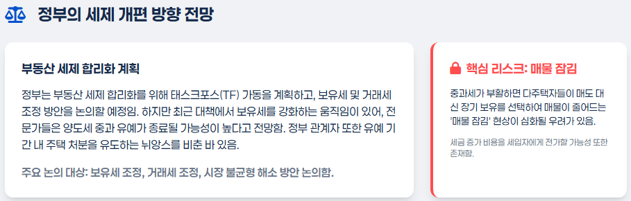 정부는 부동산 세제를 합리화하기 위해 태스크포스를 곧 가동할 계획이라고 해요. 여기서 보유세와 거래세를 조정하고, 시장 불균형을 줄이는 방안을 논의할 거예요. 하지만 최근 대책에서 보유세를 강화한 만큼, 양도세 중과 유예가 끝날 가능성이 높아 보인다고 전문가들은 말해요. 정부 관계자도 다주택자들에게 유예 기간 내에 주택을 처분하라는 뉘앙스의 말을 한 적이 있어요. 만약 중과가 부활하면, 매물이 줄어드는 '매물 잠김' 현상이 더 심해질 수 있고, 이 비용을 세입자에게 전가하는 경우도 생길 수 있겠죠.