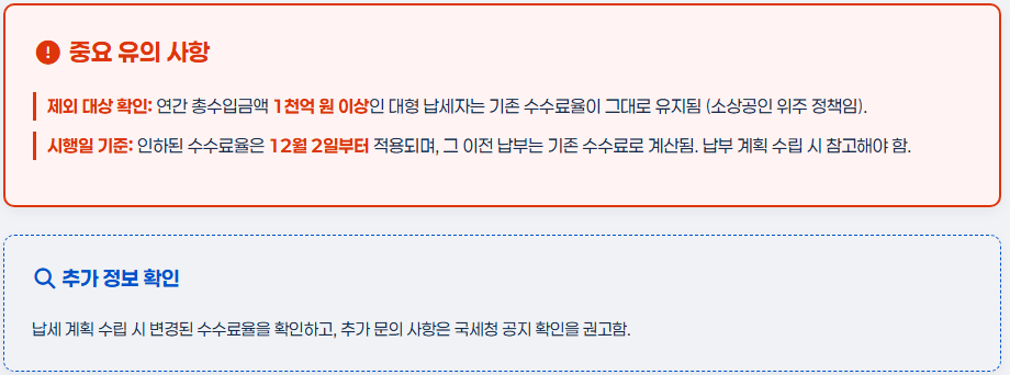 또한, 이 인하는 12월 2일부터 시작되니, 그전 납부는 기존 수수료로 계산돼요. 세금 납부 계획 세우실 때 참고하세요!