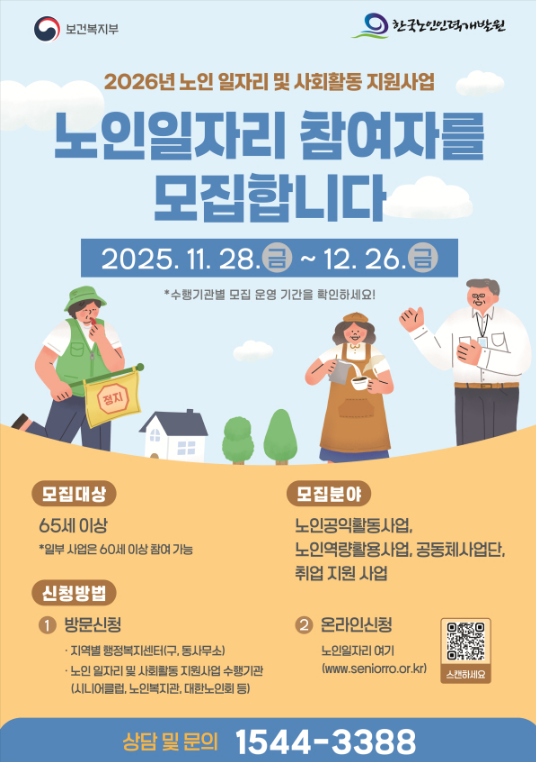 특히 내년부터는 경로당 배식지원, 지역사회 통합돌봄 보조, 노노케어(어르신이 어르신을 돌보는 활동) 같은 정말 필요한 분야를 ‘우선지정일자리’로 정해서 시도지사가 책임지고 인력을 꼭 배치한다고 하니 더 안심이 되네요.