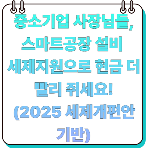 안녕하세요, 제조업을 운영하시거나 스마트공장 도입을 고민하는 중소기업 사장님들! 오늘은 정부가 새로 내놓은 ‘스마트공장 설비 가속상각 특례’에 대해 쉽게 풀어서 알려드릴게요. 복잡한 법령 문구는 최대한 빼고, 실제로 내 사업장에 어떻게 적용할 수 있는지만 쏙쏙 정리했습니다. 2025년 세제개편안과 중기부 공식 자료를 근거로 했으니 믿고 따라오세요! 스마트공장 설비에 세제 혜택이 생겼어요, 핵심만 딱! 정부가 중소기업이 스마트공장 설비를 살 때 ‘가속상각’이라는 특별 혜택을 주기로 했습니다. 말 그대로 감가상각 기간을 최대 절반까지 줄여서, 설비 비용을 훨씬 빨리 회사 비용으로 처리할 수 있어요. 결과적으로 법인세를 일찍 덜 내고, 그만큼 현금을 더 빨리 확보할 수 있죠. 적용 기간은..